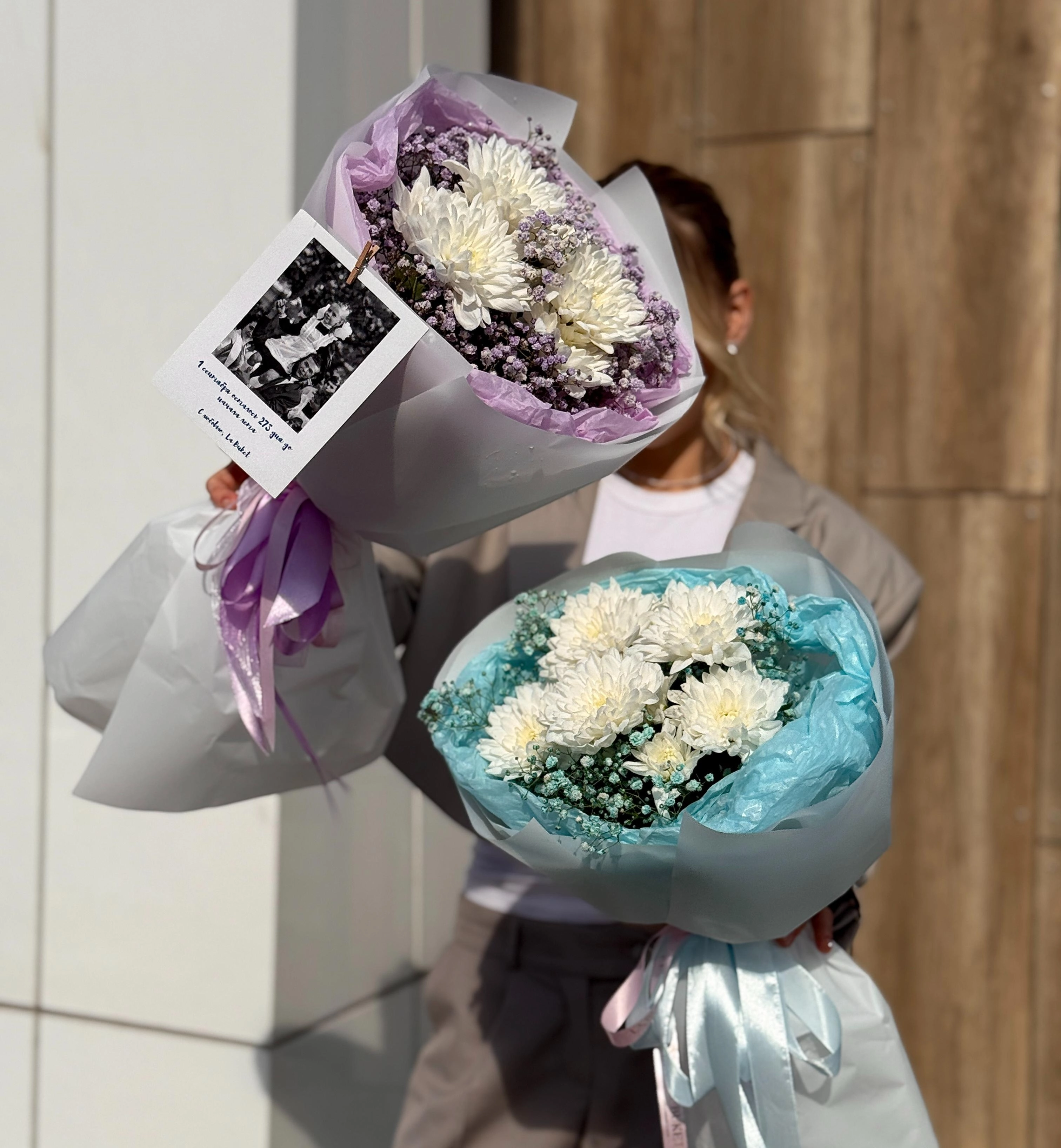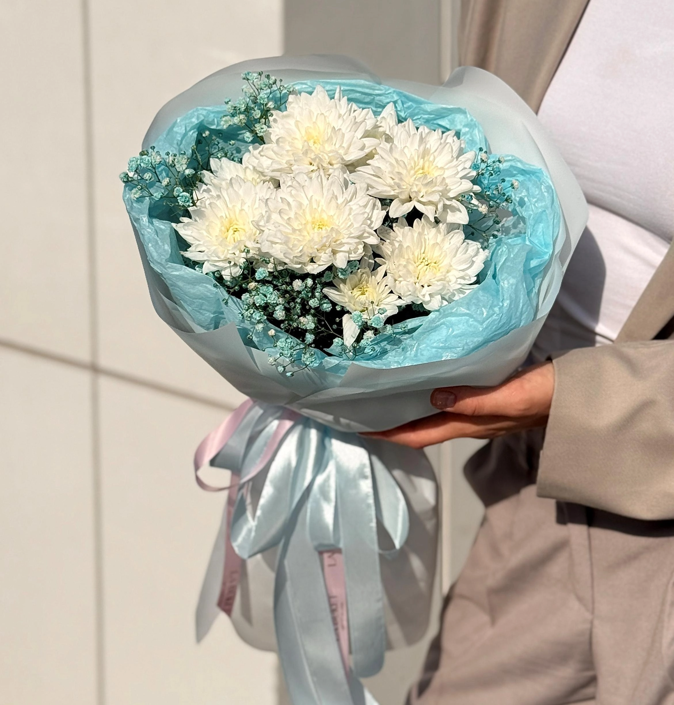 Букет из хризантемы и гипсофилы №2