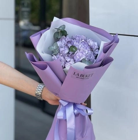 Букет из сиреневой гортензии с эвкалиптом