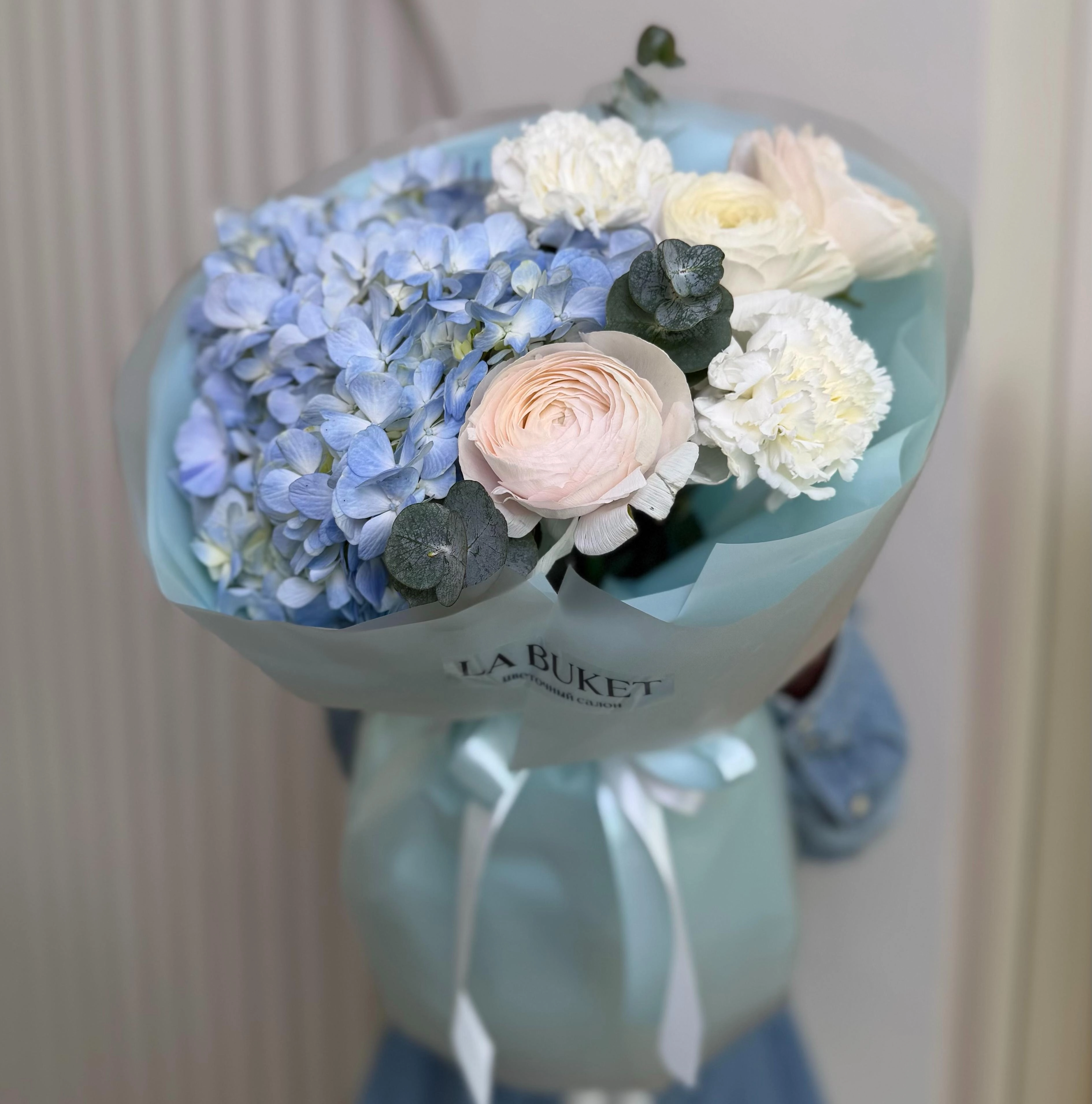 Букет из гортензии, ранункулюсов и нежных диантусов