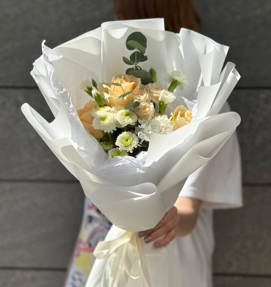 Составной букет из роз и диантусов S