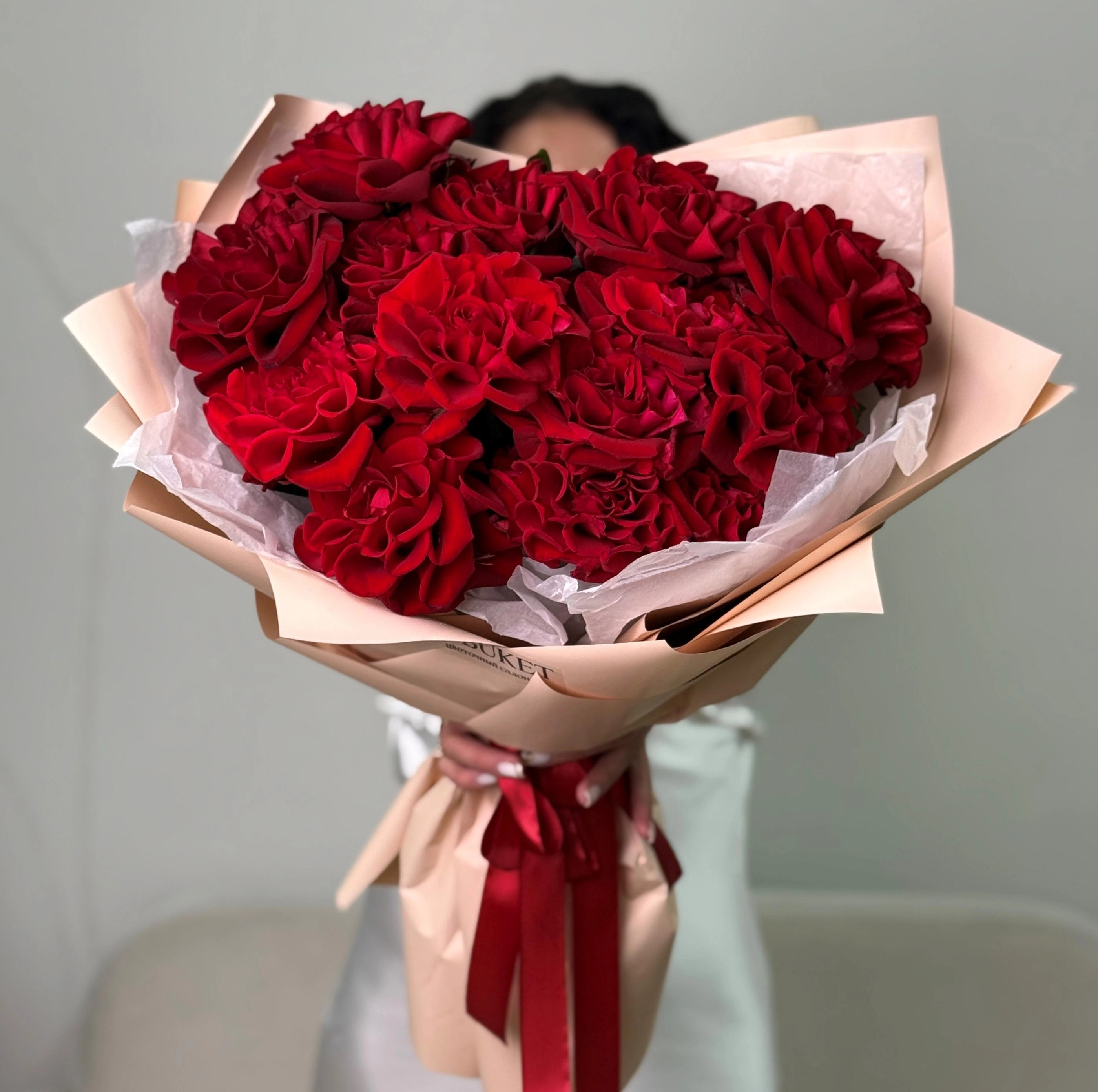 Букет из 15 красных кружевных роз