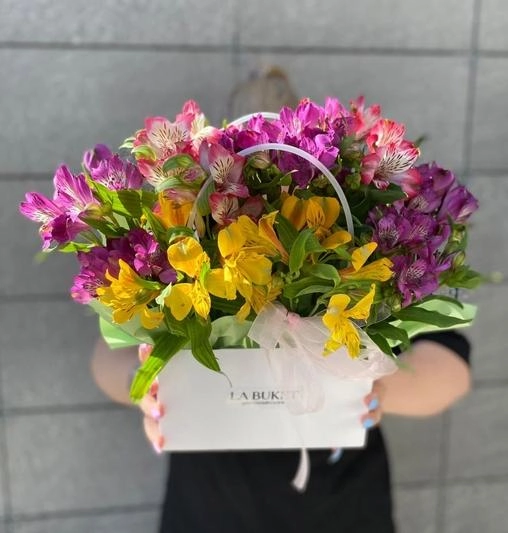 Композиция «Яркие альстромерии в сумочке»