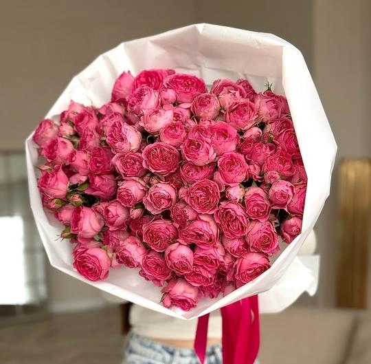 15 кустовых пионовидных роз 40/50 см в оформлении