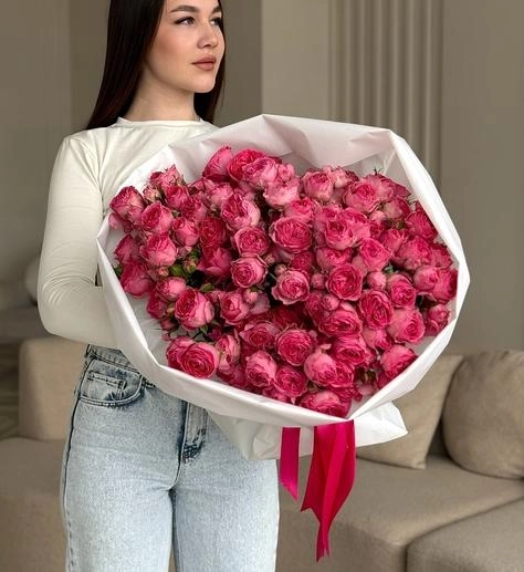 21 кустовая пионовидная роза 40/50 см в оформлении
