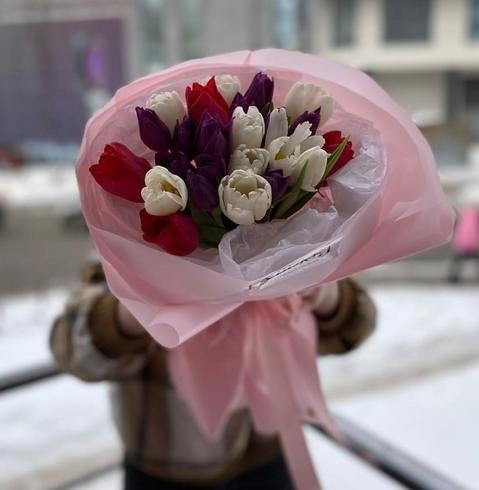 Букет "25 нежных тюльпанов в оформлении"