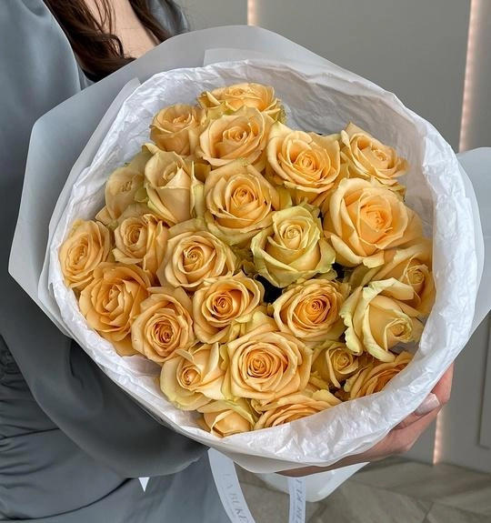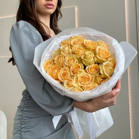 Букет "25 персиковых роз 50/60 см в оформлении""