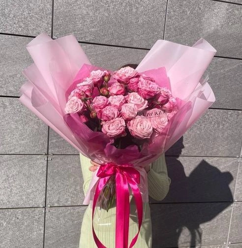 Букет "7 розовых кустовых пионовидных роз 40/50 см"