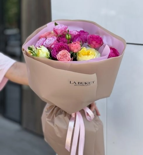 Букет "9 разноцветных кустовых пионовидных роз"