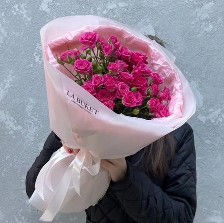 Букет из 9 малиновых кустовых роз 40/50 см