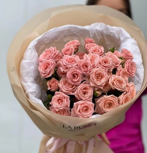 Букет "Нежно-розовые кустовые розы М"