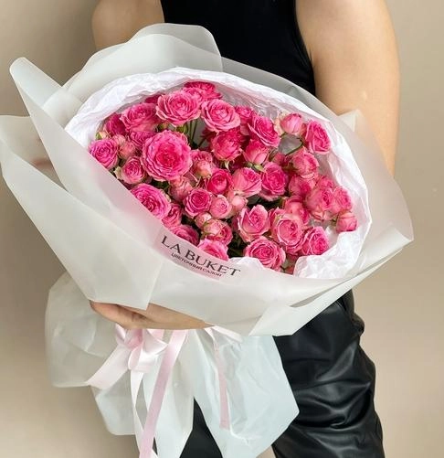 9 кустовых пионовидных роз 40/50 см в оформлении