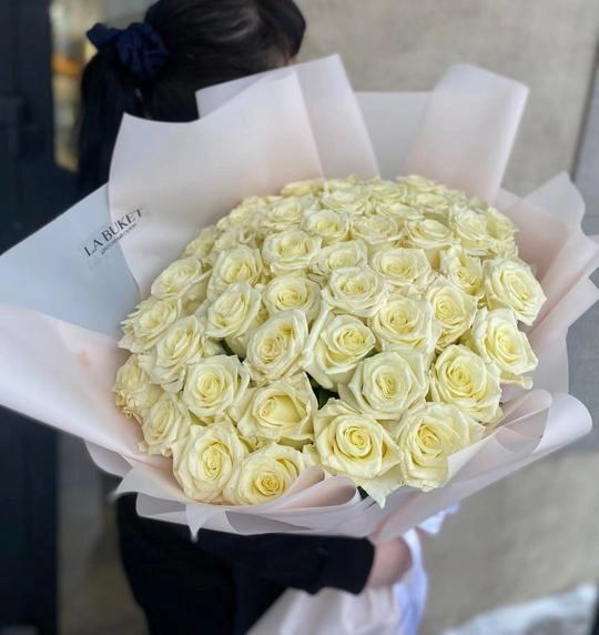 Букет "51 белая роза 50/60 см в оформлении"
