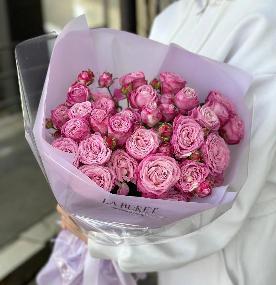 Букет "9 кустовых пионовидных роз 40/50 см в оформлении"