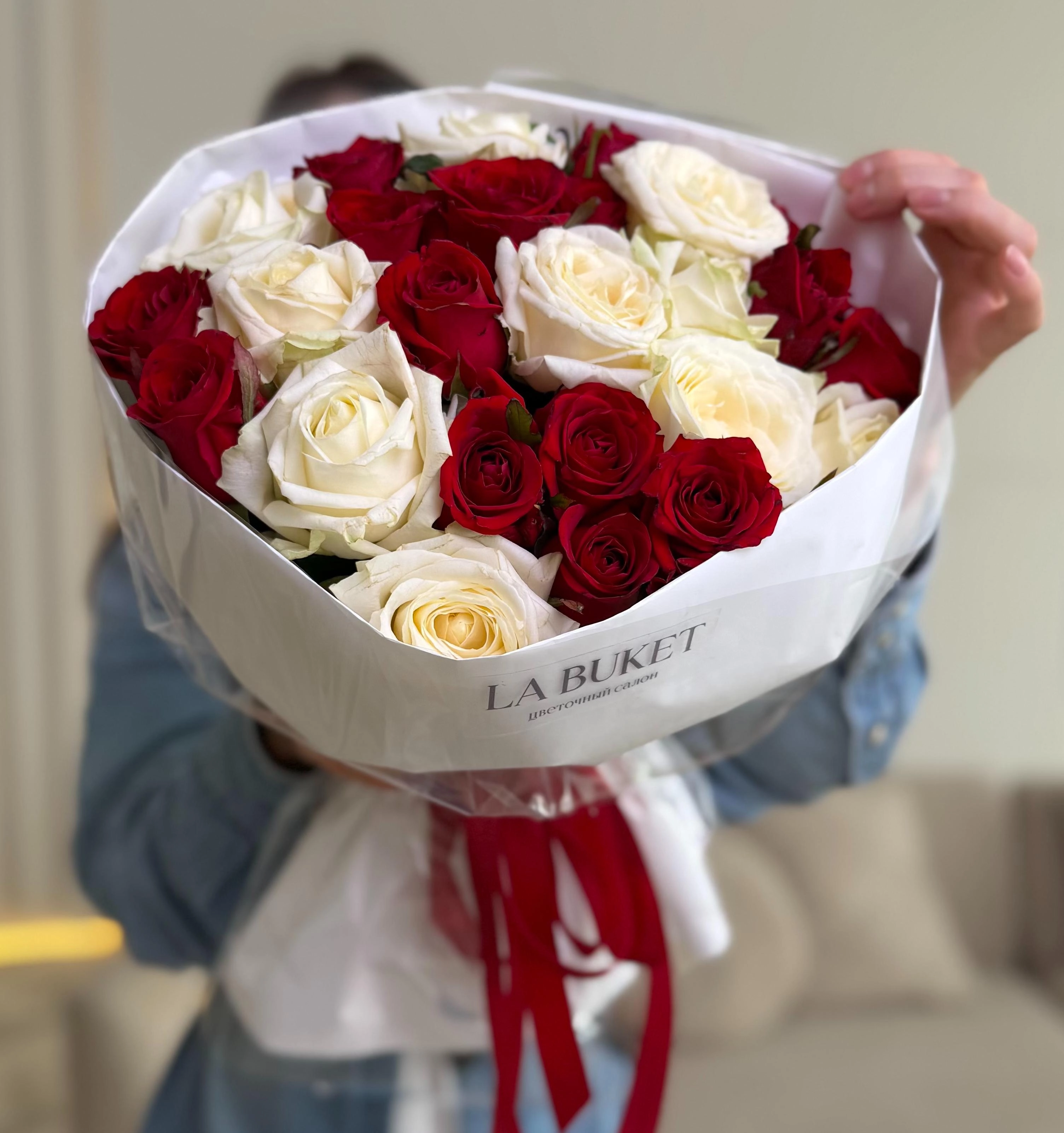 Букет из 25 красных и белых роз