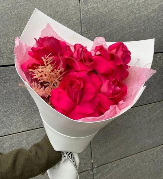 Букет из 5 малиновых французских роз