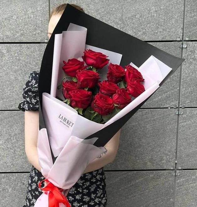 Гигант из 11 бордовых роз 70/80 см