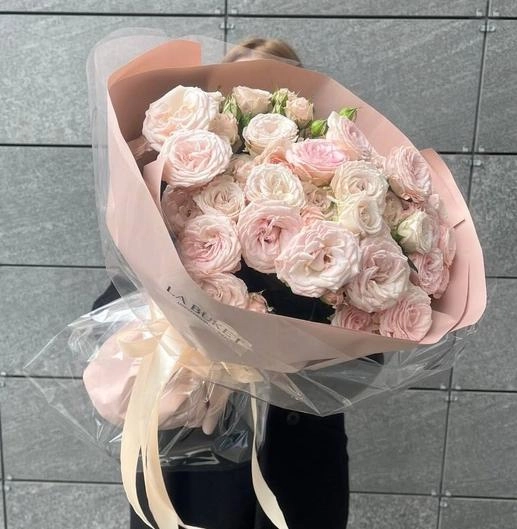 11 розовых кустовых роз 40/50 см в оформлении