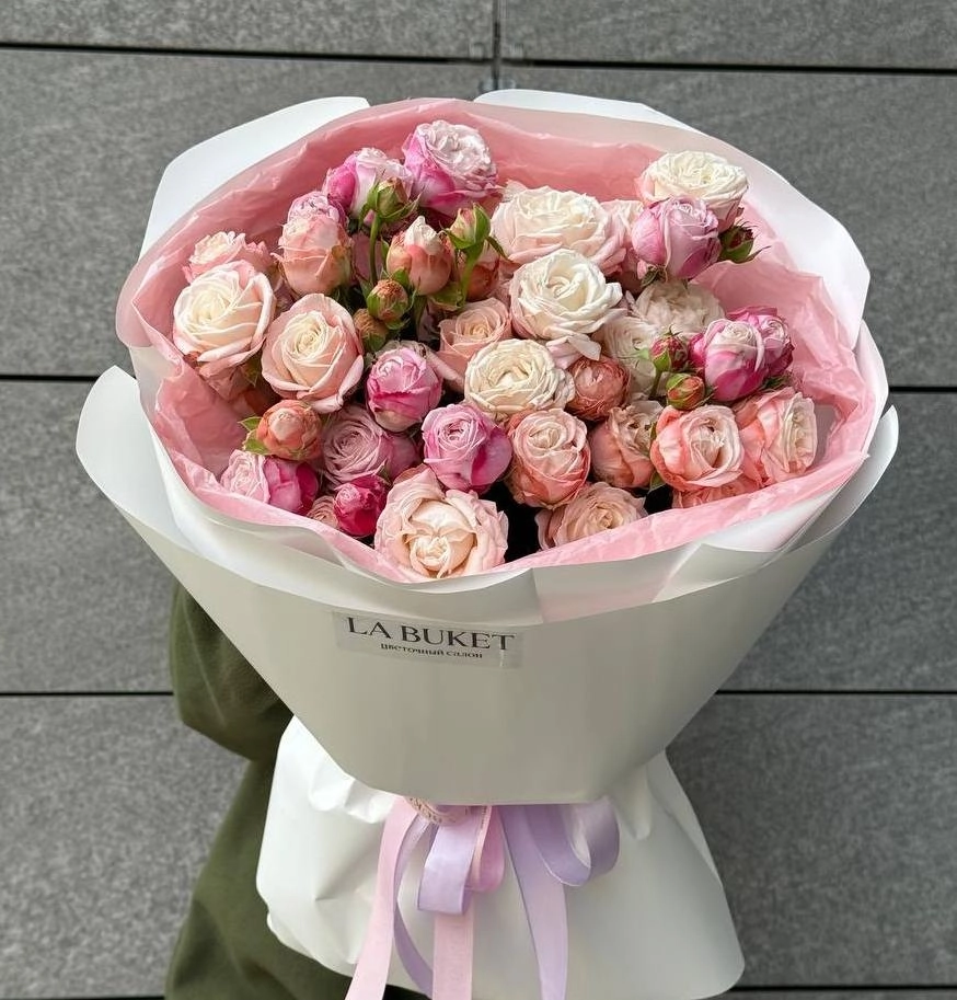 Букет из 11 розовых кустовых пионовидных роз 50/60 см