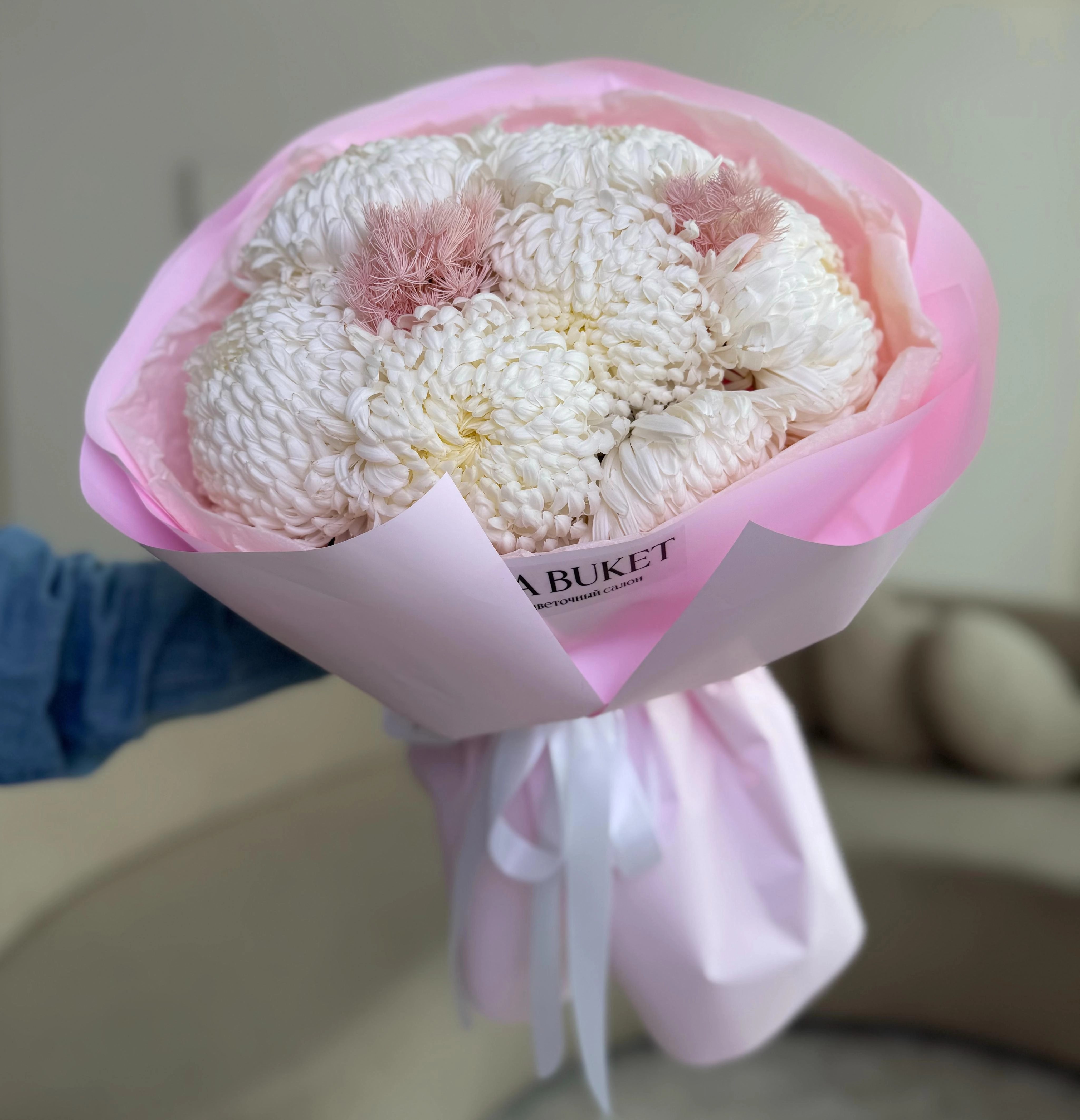 Монобукет из премиальных одноголовых хризантем